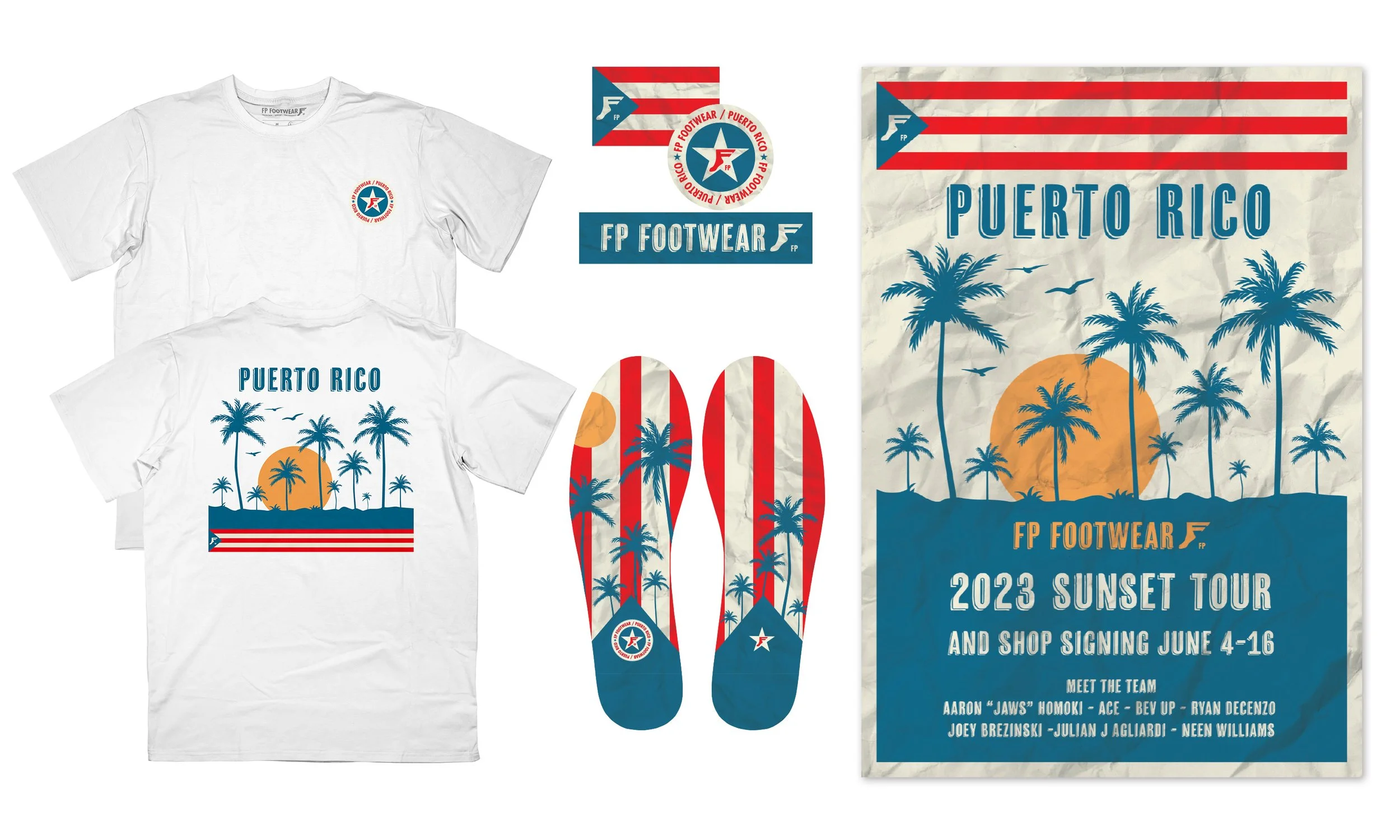 Conceptualized marketing materials, crafting engaging social media posts and e-blasts. Designed merchandise like printed posters, T-shirts, stickers, and insoles. Additionally, provided art direction for FP Footwear’s Sunset Tour video, featured on Thrasher mag, and a 12-page article in Thrasher Magazine.
